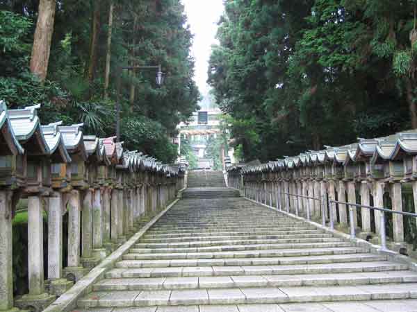 さて、ケーブルカーを降りたら宝山寺へお参り。参道の両側には灯籠が…美しいですね〜♪