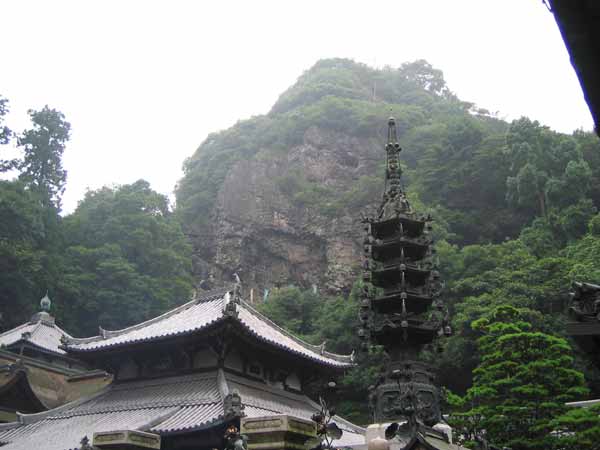 ↑こちらが本堂。奥の岩壁には昔ここを開いた方がこもって修行されたという洞窟があるそうで、壁の下の方にもやはり鳥居が。